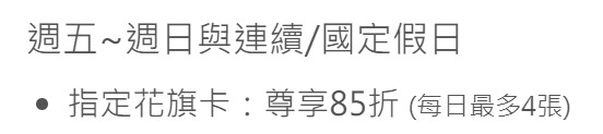 基本上平日一到四就是6折起,五到日跟國定假日85折