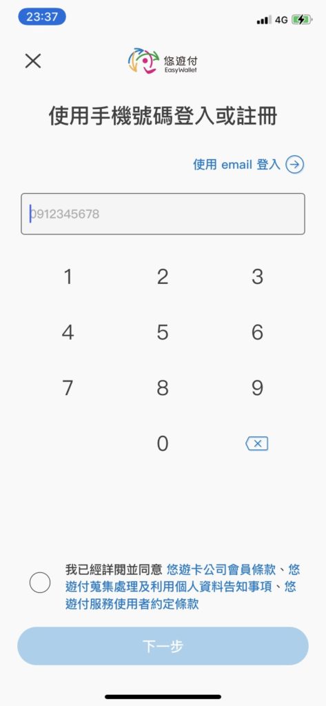 Step 1.在app store下載「悠遊付」後,開始註冊