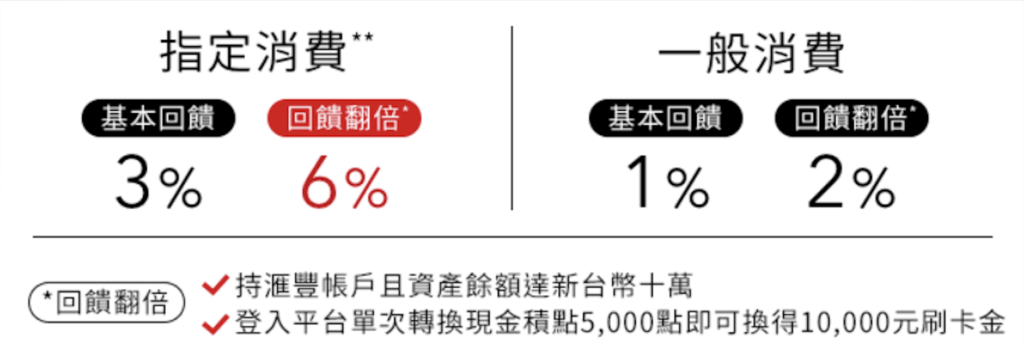 ✔️回饋達檻5000點+帳戶滿額10萬->5000點翻倍變1萬元刷卡金