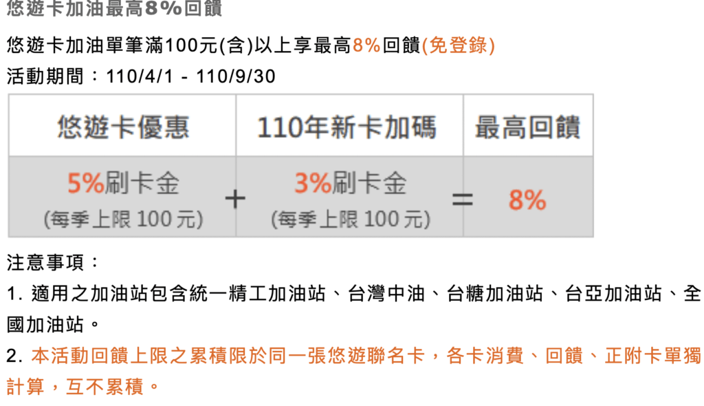- 3.優惠期間恕不與加油站其他優惠併行,並依現場牌告油價作自動降價,浮動油價均以現場公告為準。