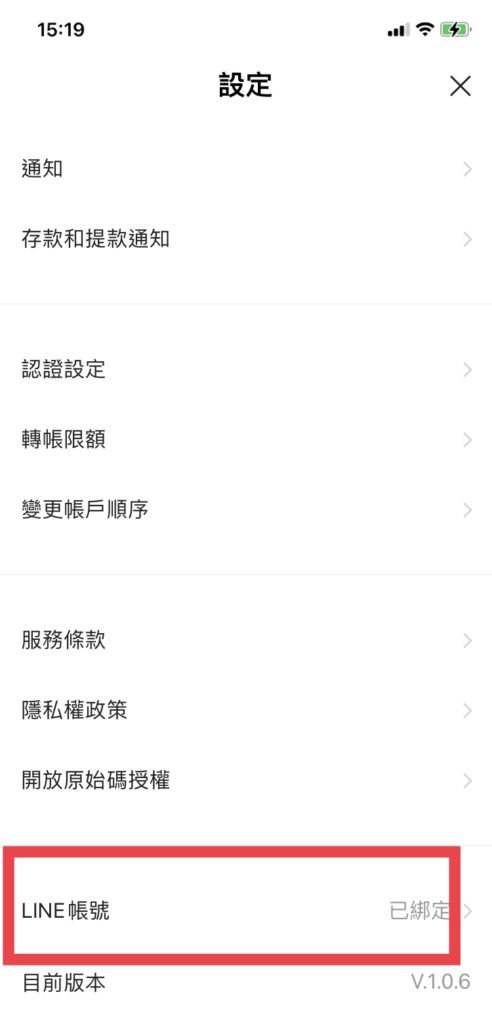 4.開啟line bank app>更多>設定>line帳號綁定