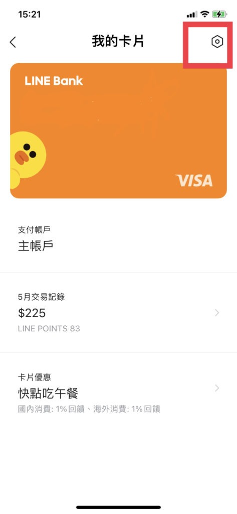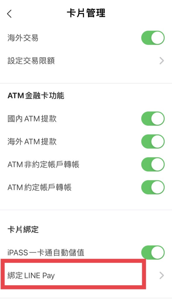 5.開啟line bank app>帳戶>我的卡片>右上角螺絲釘符號>綁定line pay>完成