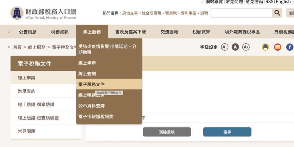 step1:點選線上服務:電子稅務文件