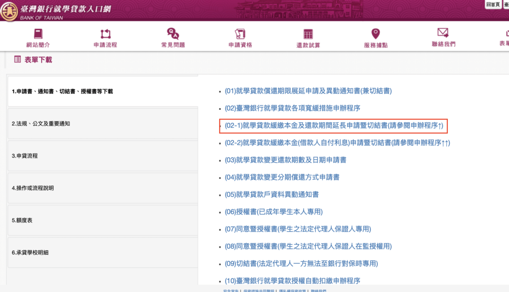 申辦的步驟也跟當時我申辦的時候有點不同,於是我重新看了臺銀申請學貸緩繳的資料。