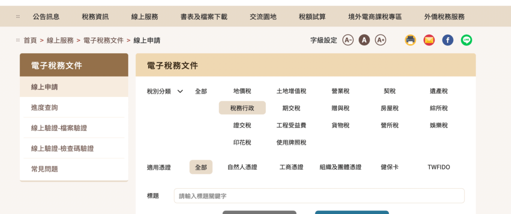 step2:線上申辦->點選行政稅務