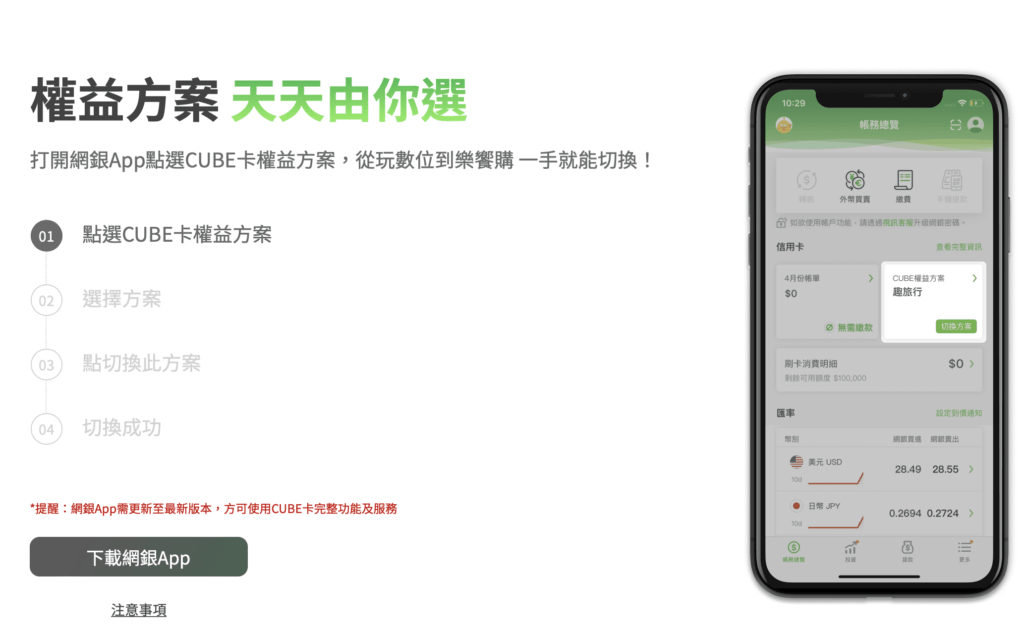 持CUBE卡刷卡消費,小樹點(信用卡) 每 10 點折抵NT$10消費金額,每筆消費最高折抵30%!
