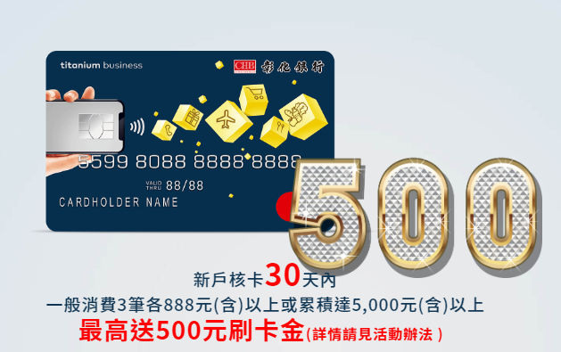 「新戶首刷禮最高送500元刷卡金」