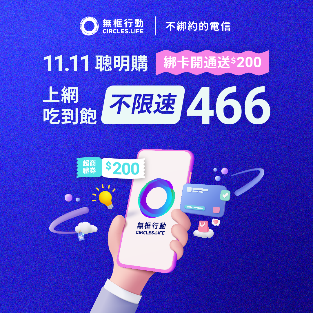 新活動使用優惠序號 〖22SMART466〗,月租$466,再送200元超商禮券