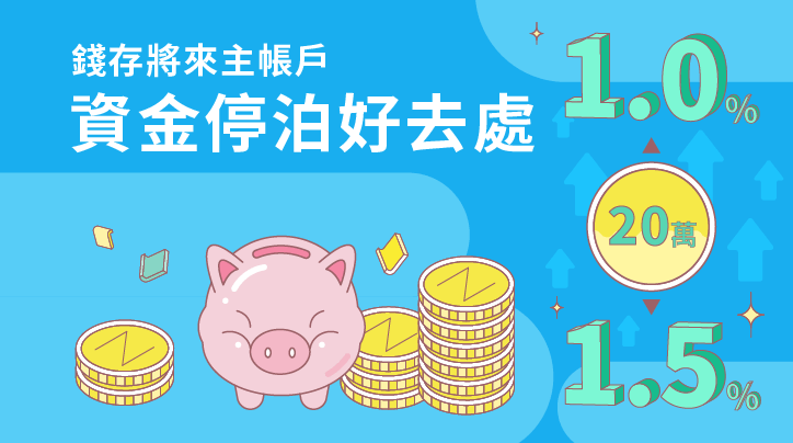 主帳戶活儲利率20萬內1.5%,超過20萬1%(新舊戶同享)